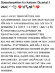 Es wurde über „privat“ eine Spendenaktion für Katzen veranstaltet und in diesem Zusammenhang wurden 500€ auf drei gemeinnützige Vereine verteilt.